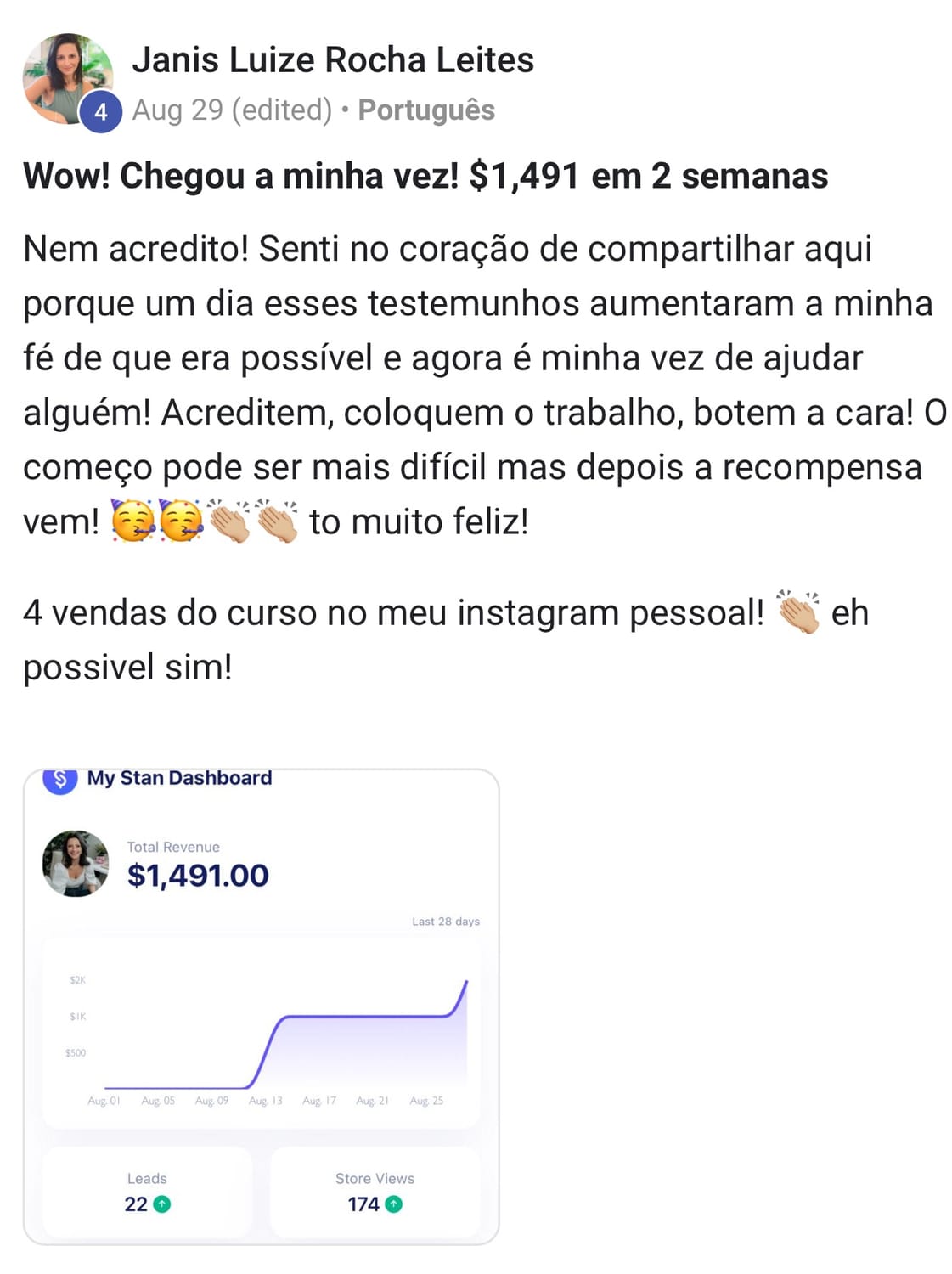 Hoje, depois de muito estudo, erros e tentativas, eu vivo do digital. Trabalho de casa, faço o que amo e ajudo outras pessoas a fazerem o mesmo. Meu objetivo é mostrar que é possível sim viver do online, mesmo sem falar inglês, mesmo começando do zero, mesmo sendo imigrante.